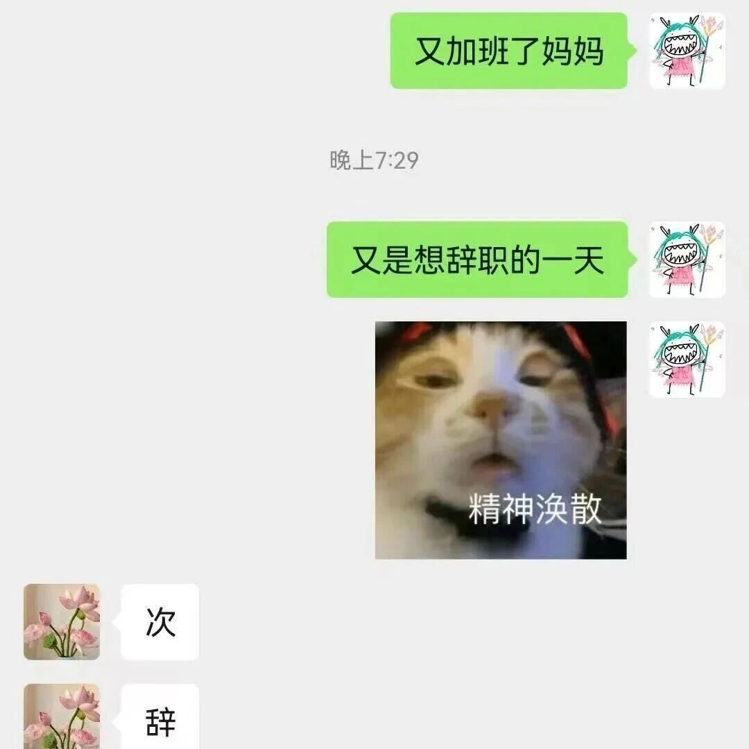 转自:喵大白话 我真的嫉妒了............ 妈妈 不想干了!! ¥10000.00 请收款 微信转账 回家 妈妈养你 00公公司 中文早点 想妈妈 and 想妈妈做的饭饭 and 什么时候回家 妈妈给你做 要很久呜呜呜 要不别干了 妈妈养你 0 公公司 | 曲大自注 呵呵呵妈妈妈!! and 我今天被老板扣钱了 and 发挥课 没事的没事的 多少妈妈补给你 不用了妈妈 就五块嘿嘿 ¥500.00 请收款 微信转账 要不回家吧 妈妈养你 00公公司 中大自注。 妈妈 and 工作真的太痛苦了而 咱不干了回家 妈妈我其实还能坚持一 那周末和朋友去吃点好吃的 ¥2000.00 请收款 微信转账 什么时候不想干就回家 妈妈养你 00公公司 中大自注 话糙理不糙。。。。 为了毛衣不缩水有多努力: 下班后唯一愿意收到的消息 : 18:00之后,这个时间段我发的 信息大家不要回复 2 公众号 · 喵大白话 li 这边是不需要加班的; 工作与生活区分开来, 18:00下班, 大家照顾好自己。 18:00之后,这个时间段我发的信息大家不要回复 % 公众号 · 喵大白话 ID 佳在森林里 我的+1 10月9日 22:2 ...