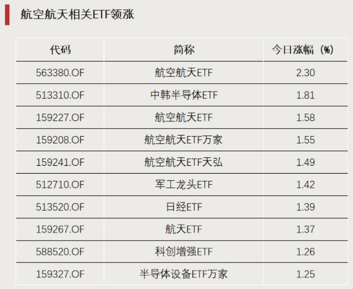ETF收评 | A股全线下跌 ,航空航天板块走强 ,航空航天ETF涨2%