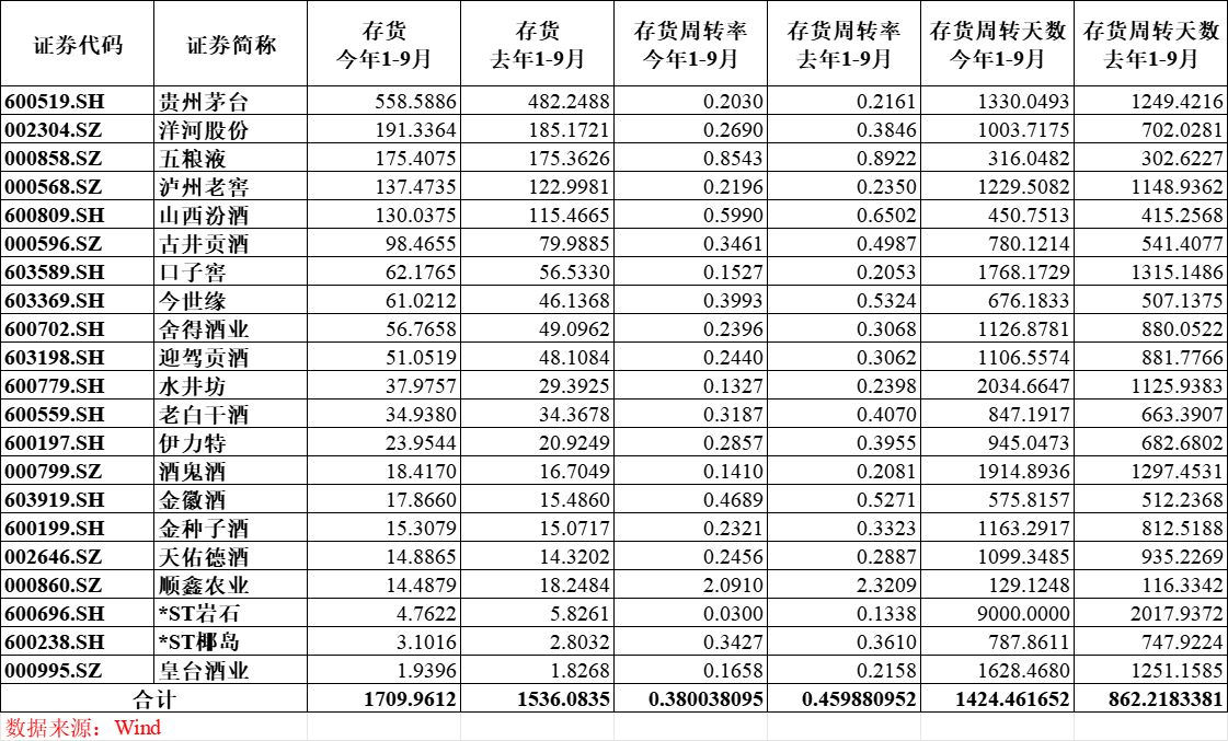 在行业调整的"至暗时刻",这份逆势增长的合同负债背后,是渠道对行业、对酒企的信心坚守。那么,究竟是什么支撑了这份信心?哪些举措缓解了渠道压 力?记者将通过数据拆解与案例分析,探寻白酒渠道信心的来源,以及厂商关系正在发生的深层变革。业绩低迷背后现暖意: 白酒合同负债逆势增至390亿 头部酒企成增长主力 近年来,在产能增长与需求放缓、消费动能不足与价格下行、消费场景弱化与产业增长压力等多重背景之下,"高库存""内卷"成为白酒行业年度关键词。 从存货周转时间来看,截至2025年三季度末,21家白酒上市公司存货总额攀升至1709.96亿元,同比增长11.32%。值得关注的是,所有公司的存货周转天数 均出现延长,平均存货周转天数达到1424天,较去年同期的862天大幅提升65.21%。 10月30日晚间,A股白酒行业2025年第三季度业绩报告悉数披露,堪称"近十年最差"。 | 证券代码 | 证券同称 | 存货 | 存货 | 存货周转率 | 在货周转率 | 存货周转大数 | 存货周转天 | | --- | --- | --- | --- | --- | --- | --- | --- | | | | 今年1-9月 | 去 ...