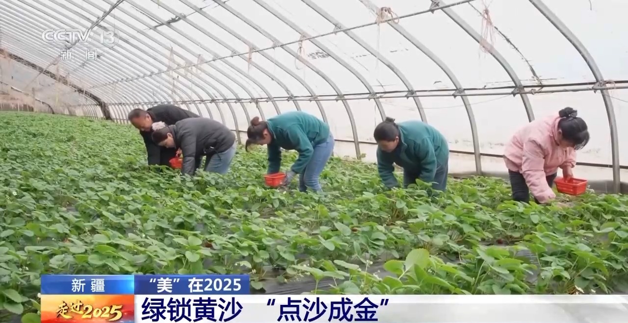 在"两山"理念的科学指引下,中国之美日新月异。2024年11月28日,全长3046公里的世界第二大流动沙漠塔克拉玛干沙漠锁边工程实现全面"合龙",构筑起 世界上最长的环沙漠绿色生态屏障。戴上了"绿围脖"一年多的时间,生活在沙漠边缘的人们仍在不懈推进防沙固沙工作,探索发展沙经济。下面就跟随记者 去看那里的治沙新成效和沙产业发展的新成果。 总台记者卜鹏:这里是位于塔克拉玛干沙漠边缘的新疆和田地区和田县万亩设施农业基地,一座座标准化的大棚整齐排列,现在正值大棚果蔬采摘的季节, 当地依托现代化农业管理技术,让曾经的万亩沙海变成助农增收的绿色基地。 走进和田县万亩设施农业基地温室大棚,眼前一派丰收忙碌的景象,鲜嫩的草莓散发出诱人香气,种植户正忙着采摘草莓。 基地采用黄沙无土栽培、水肥一体化、自动温控系统等种植管理技术,在万亩沙海中建成1000座现代化农业大棚,每年产出上万吨的优质果蔬,把曾经的荒 漠打造成了现代化果蔬基地。 责编:李磊、李萌 在沙漠边缘发展设施农业,不仅能够阻挡风沙侵袭,还能够产生经济效益,而这仅仅是新疆发展沙经济的一个缩影。 锁边"合龙"一年来,沙漠玫瑰、肉苁蓉、中草药等特色种植在塔克拉玛干沙漠边缘蓬 ...