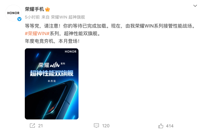 荣耀WIN系列新机本月登场:从“加速”到“稳赢”品牌哲学升级