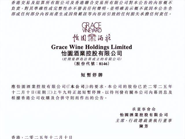 业绩萎靡的怡园酒业(08146.HK)有了新买家。 2108年是一个关键节点,那年怡园酒业成功登陆港交所,站上国际资本窗口。但从上市后的财报看来,怡园酒业的经营一直不温 不火,营收规模从未超过1亿元。 大概十天前,怡园酒业披露停牌公告,原因是"以待刊发有关本公司内幕消息及根据香港公司收购及合并守则而作出的公告"。 如今,股票尚未复盘,怡园酒业的"易主"消息已经先行传出。 经营萎靡 近日,有媒体报道称,1919集团创始人、董事长杨陵江透过全资公司成为怡园酒业第一大股东,持股比例为73.63%。且相关交 易已于12月12日完成。 信息显示,卖方Macmillan Equity、Palgrave Enterprises、王穗英已将所持股份全部出售给买方,怡园酒业创始人家族基本退出上 市公司股东行列。不过,杨陵江方面作为买方,在交易完成后又将部分所得怡园股份质押给了3位卖家,但未披露质押原因。 有人粗略算了一笔账,若以怡园酒业12月9日收盘价0.27港元/股估算,此次交易对价估算约1.6亿港元。但从购买后又质押部分股 份的操作来看,相关收购资金应当会减少一些。 "卖身"或许是由于怡园酒业没有起色的经营面。 在葡萄酒行 ...