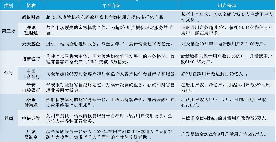 对于手握积蓄寻找确定性的投资人来说,基金投资正从"单品选择"转向"平台甄选",因为后者直接关系到资产配置的效率和长 期财富的守护。 当前,监管环境的变化在重塑行业走向。2025年中国证监会印发的《推动公募基金高质量发展行动方案》提出建立基金销售机 构分类评价机制,并合理调降公募基金的认申购费和销售服务费,这一政策推动行业从"求快"到"深耕"转型。 21世纪经济报道李域 随着政策导向的变化,各大代销平台纷纷调整战略,淡化短期"翻倍基"的宣传,转而强调长期回报能力与持有体验。这种转变 使得代销平台的竞争更加多元化,不再仅仅围绕费率与产品广度,而是扩展到投顾服务、数字化工具、内容生态等综合能力的 比拼。 21世纪经济报道投顾课题组选取市场上九家具有代表性的基金销售机构,涵盖三类核心阵营,包括第三方基金销售机构蚂蚁财 富、腾讯理财通和天天基金,银行系的招商银行、工商银行和平安银行,券商系的中信证券的信e投、华泰证券旗下的涨乐财富 通和广发证券易淘金,课题组从平台定位与用户满足、权益类基金保有规模与产品筛选、内容布局与特色服务三大维度,系统 对比各平台的差异与共性,深度拆解其运营逻辑,最终形成系列文章,供投资者参考。 ...