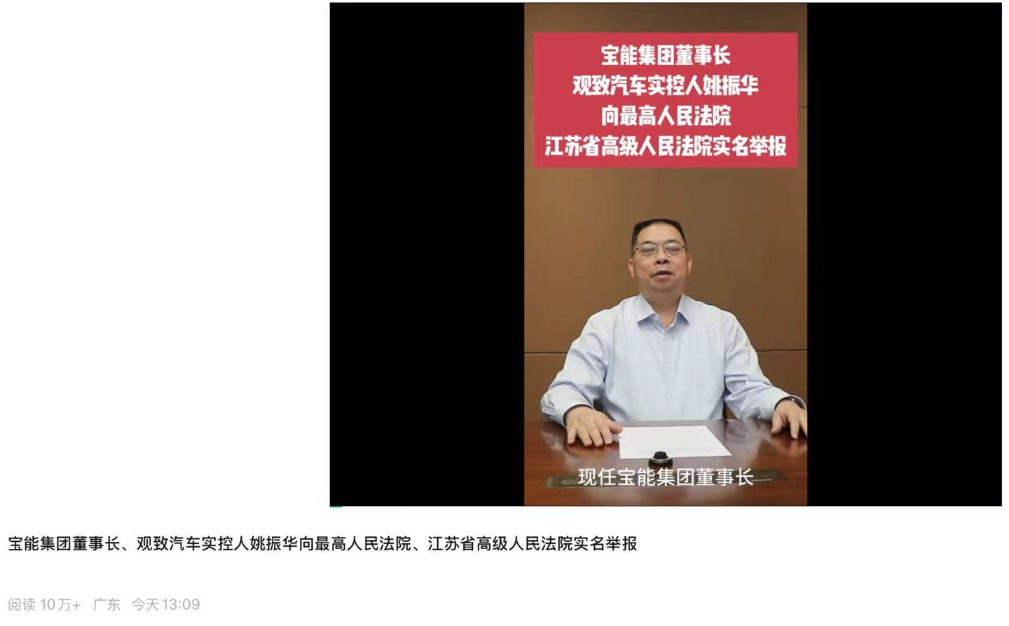 宝能董事长姚振华实名举报,事关观致汽车破产重整