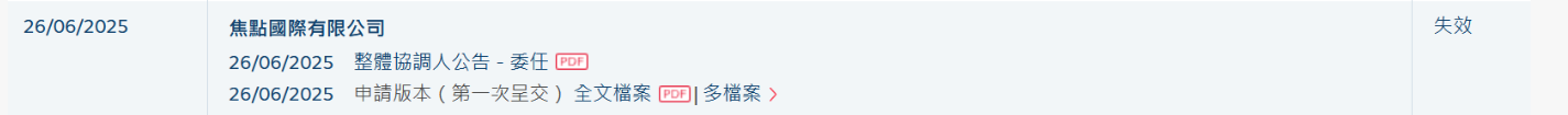 焦点国际有限公司(简称:焦点国际)于6月26日所递交的港股招股书满6个月,于12月26日失效,递表时建泉融资有限公司为独家保荐人。 招股书显示,焦点国际主要从事制造及销售吸收性卫生产品,以及销售卫生产品材料。公司的吸收性卫生产品可分为三类:婴儿护理产品、女性护理产品, 以及成人失禁产品。此外,公司亦销售卫生产品材料。通过多品牌策略,公司主要于中国提供种类繁多的吸收性卫生产品。"全棉小时光"、"焦点宝 贝"及"贝姆乐"为公司的婴儿护理产品,而"薇月"及"蓝棉花"为公司的女性护理产品。 | | 26/06/2025 整體協調人公告 - 委任 歴 | | --- | --- | | 26/06/2025 | 焦點國際有限公司 26/06/2025 申請版本(第一次呈交) 全文檔案 [四] 多檔案 > | ...