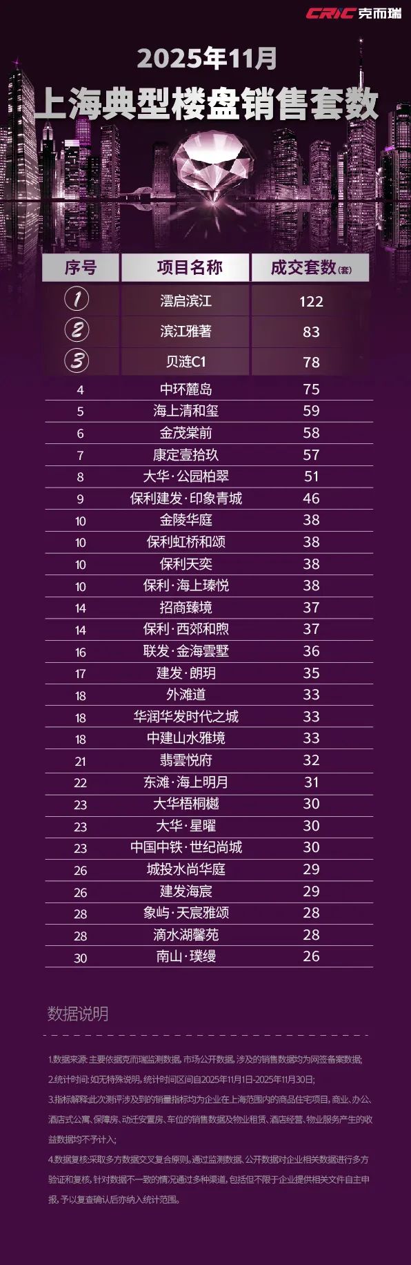 上海楼市年末销售动态 - 年末临近,上海各房企正采取多种方式冲刺年终业绩 [1] - 随着2025年11月24日年内最后一次土地拍卖落幕,行业焦点更集中于销售市场 [2] 2025年11月市场供应与成交概况 - 2025年11月,上海共计有29个新盘入市 [3] - 当月上海新房成交面积约为33.5万平方米 [3] 单盘销售表现排名(部分) - 澐启滨江、滨江雅著以及贝涟C1分别名列当月销售套数前三名 [7] - 销售套数排名前列的项目包括:联发·金海雲墅(36套)、建发·朗明(35套)、外滩道(33套)、华润华发时代之城(33套)、中建山水雅境(33套)等 [5] 贝涟C1项目表现分析 - 贝壳集团旗下贝好家独立操盘的住宅项目贝涟C1首秀表现亮眼,其销售面积与销售套数均位列当月第三名 [7] - 该项目于2024年12月31日获取土地,2025年10月底首次开盘,销售业绩体现在11月的网签数据中,被称为四季度上海楼市的“黑马” [7] - 在11月销售前十名的项目中,贝涟C1的地块体量最小,建设用地面积仅为23亩,跻身前三名尤为不易 [8] - 在当前市场以理性观望为主的情绪下,该项目的逆市热销表明高品质“好房子”仍具备较强的客户号召力 [8] 行业趋势与专家观点 - 行业观点认为,在上海大力推进高品质住宅建设的背景下,“以优质供给更精准地满足多元化高品质居住需求”已成为广泛共识 [8] - 优质供给体现在科学合理的规划设计、紧密贴合职住平衡需求以及较高的性价比上 [8] - 伴随年底购房需求集中释放,第四季度被认为是优质住房产品推广的黄金窗口期 [8]