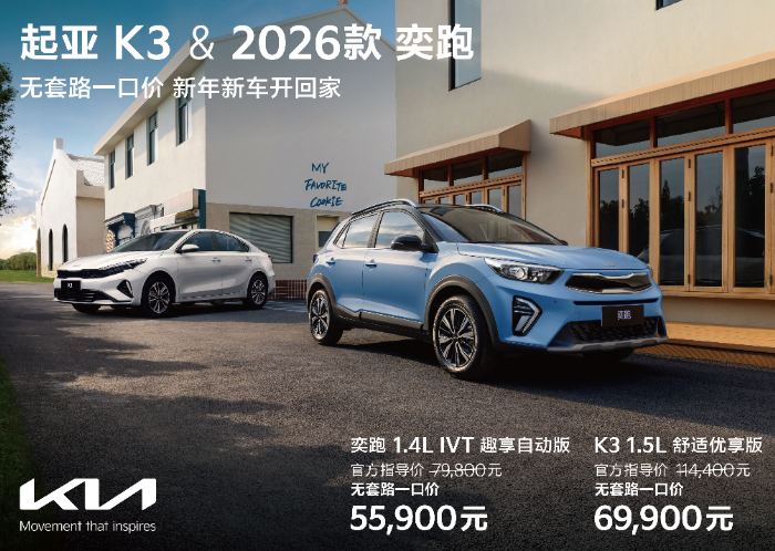 行业市场动态 - 2026年车市开局火爆,主要受“以旧换新”国家补贴调整政策推动,各车企随之推出促销优惠政策,点燃了市场购车热潮 [1] - 在行业促销背景下,公司推出极具竞争力的价格,5万多元可购买全球高品质SUV,6万多元可购买合资全能家轿 [1] 公司销售策略与市场反应 - 公司推行“全国一口价”政策,旗下起亚K3 1.5L舒适优享版全国统一价为69,900元,2026款起亚奕跑1.4L IVT趣享自动版全国统一价为55,900元 [3] - 该政策旨在降低购车门槛,并为消费者创造公开、透明、无套路的购车环境 [3] - 政策实施后,全国经销商门店客流量激增,置换新车和首次购车用户络绎不绝 [3] - 本月前三周,公司全国经销商的平均进店看车人数较去年同期提升超过200% [3] - 全系车型的订单咨询转化率显著提高,整体增幅达120% [3] - 在盐城、济南、成都等主销地区,近两周新车订单量超过去年同期的3倍 [3] 2026款起亚奕跑产品分析 - 该车型定位为“全球高品质小型SUV”及“品质生活的省心SUV”,旨在满足年轻人对品质、颜值、易驾性、实用性和经济性的需求 [5] - 提供多元化车身颜色,包括透明白、天霜蓝、胭脂红等单色方案,以及黑色/皓月白、黑色/律动黄、黑色/天霜蓝等双色方案,以打造更潮流时尚的形象 [6] - 车身轴距为2,570mm,为前后排乘客提供宽敞空间,后排座椅支持6:4分离放倒以容纳大件物品 [8] - 配备智能钥匙+一键启动、8英寸多媒体娱乐系统、驾驶席大型化妆镜(带照明)、电动天窗+眼镜盒、外后视镜加热、倒车影像、定速巡航等配置 [8] - 车身尺寸为4,100mm × 1,735mm,最小转弯半径为5.45米,提供灵活驾驶体验,对新手友好 [10] - 消费者评价其为“花小钱办大事”,是真正懂用户需求的座驾 [5] 起亚K3产品分析 - 该车型是公司旗下经典A级家轿,集时尚外观、丰富配置、宽敞空间、高效经济于一身,旨在提供物超所值的越级体验 [11] - 外观采用“虎啸式”前脸和流畅车身线条,兼顾沉稳气质与运动气息 [13] - 车内轴距达2,700mm,提供越级驾乘空间,前排头部空间宽敞,后排腿部空间充足 [13] - 配备电动天窗、前排座椅通风与加热、智能感应后备箱、一键启动+智能钥匙、倒车影像、FCA前方防撞辅助、HDA高速公路驾驶辅助等功能 [13] - 动力方面,1.5L车型匹配高效IVT变速箱,WLTC百公里综合油耗低至5.55L;1.4T车型WLTC百公里综合油耗为5.8L,兼顾动力与节能 [15] - 消费者评价其“给了年轻人一份体面” [11] 公司政策影响总结 - “全国一口价”政策使消费者彻底告别区域差价与议价过程,在任何经销商门店均可享受统一透明的价格体系 [17] - 该政策有助于消费者,无论是首次购车还是置换新车,都能便捷地选择到品质可靠、配置丰富的车型 [17]