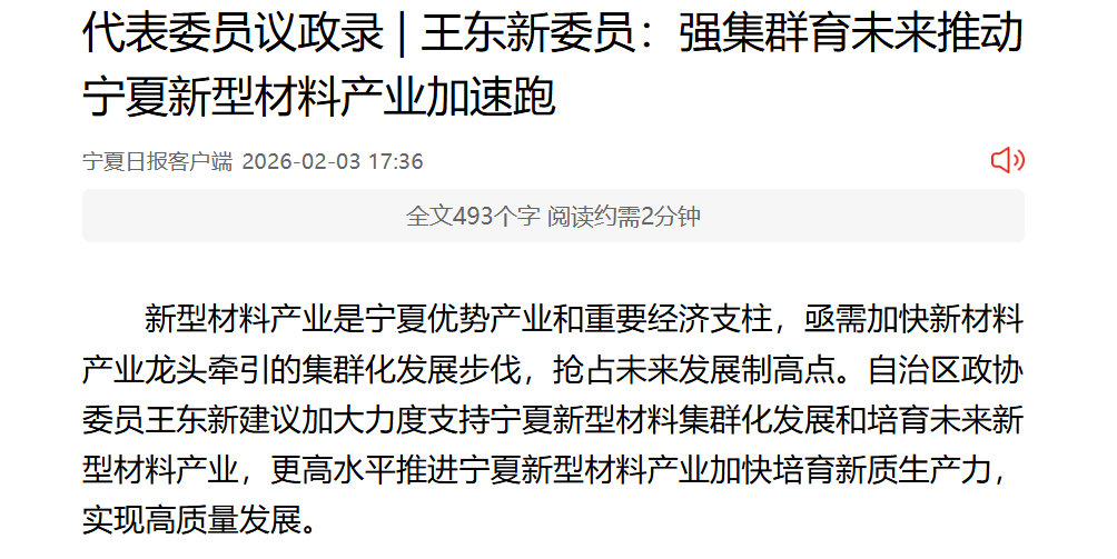 【宁夏日报】代表委员议政录 | 王东新委员:强集群育未来推动宁夏新型材料产业加速跑
