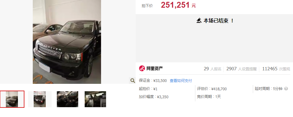 起拍价1元!一辆路虎揽胜将进行司法拍卖:估价418700元
