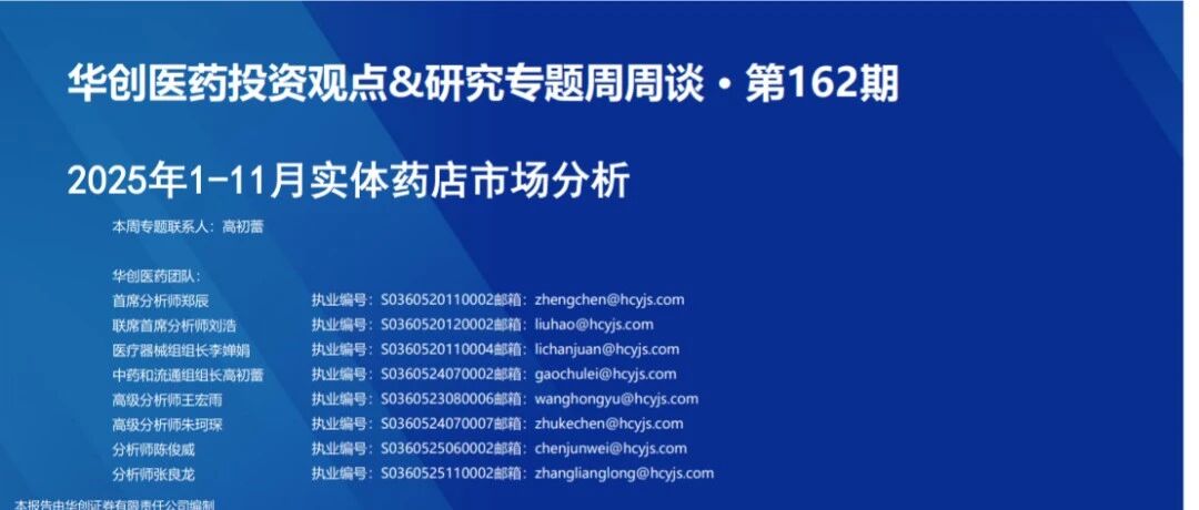 华创医药周观点:2025年1-11月实体药店市场分析 2026/02/07
