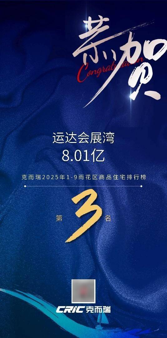 在行业深度调整的背景下,大盘开发屡见挑战,许多项目止步于"热销现象",难以跨越至"良性典范"。 运达会展湾的实践,为我们解读大盘的成功提供了范本。 数据破局 有质量的增长,有穿透周期的耐力 2025年三季度克而瑞长沙房企销售榜单显示,运达会展湾以8.01亿元的成交金额位列雨花区第三。 销售额固然是直观的刻度,但背后的"含金量"更值得关注。 在整体均价约1.3万元/㎡,套均价约140万的长沙市场,运达会展湾以超1.8万元/㎡的均价、近500万的套均总价逆市而立,价格落差近5000元/㎡,套均总 价更是市场水平的3倍有余。 项目在两年半内成交超50亿元,成为长沙实现此业绩的"唯四"项目之一,这不仅是价格层面的突破,更印证了高端市场对优质产品的强烈需求。 | . Ma PC 301 105 Mar | | | | | | | | | | | | | | | | | | | | | --- | --- | --- | --- | --- | --- | --- | --- | --- | --- | --- | --- | --- | --- | --- | --- | --- | --- | --- | --- | ...