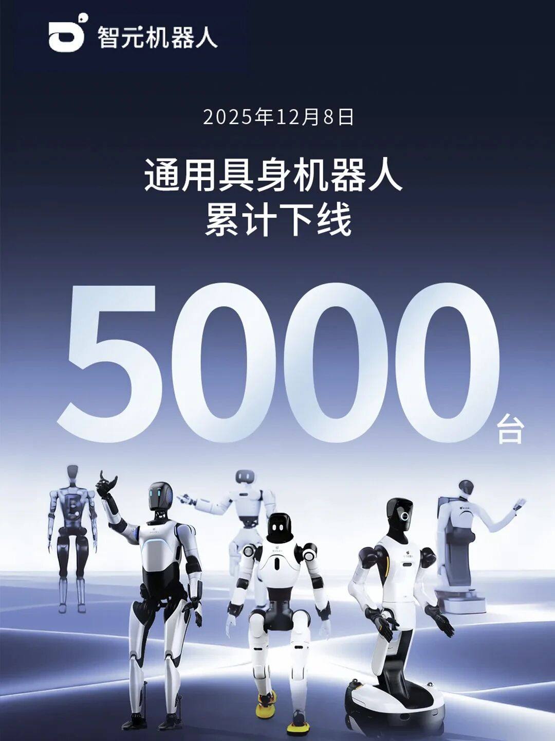 公司里程碑与产能 - 2025年1月,公司第1000台通用具身机器人量产下线,刷新行业纪录[1] - 随后不到一年内,公司将量产纪录刷新至5000台,标志着在全球率先实现了人形机器人的规模化量产和商业化落地[1] - 第5000台通用具身机器人(灵犀X2)于12月8日在上海量产工厂下线[3] - 公司已实现从千台到五千台的产能跃升,并规划明年1万台、未来10万台的产能蓝图[3] 产品与技术优势 - 公司已完成“一体三智”全栈技术架构和三大生产基地的快速落地[1] - 公司是全球目前唯一规模化量产具身智能的企业,也是业内目前唯一实现全产品系列、全场景布局的机器人企业[1] - 机器人本体经多轮迭代后结构更轻、强度更高,感知、运动、交互三大智能持续进步[5] - 公司打造了零门槛动作创作平台、个性化定制工具等软件[5] - 与供应链联合开发的核心零部件在提升性能的同时推动成本稳步下降[6] - 公司正式发布新一代工业级交互式具身作业机器人智元精灵G2,该产品已获数亿元订单并开启首批商用交付[8] 商业化进程与市场应用 - 公司发展分为三个阶段:第一阶段聚焦产品打磨与验证,通过真实场景测试(如综艺节目、行走挑战)验证产品可靠性与稳定性[5] - 第二阶段启动规模量产,实现从能做到做得好、做得快,再到持续稳定交付[5] - 第三阶段进行市场需求深度优化,客户应用从单机功能展示扩展到多机协同与全场景部署,公司从单纯提供产品转向为客户创造价值[6] - 公司产品已售往全球多个国家和地区,应用场景覆盖讲解接待、工业智造、文娱商演等八大核心场景,实现从B端工业级应用到C端个性化需求的全面渗透[6] - 远征、灵犀、精灵三大系列累计下线数量分别为1742台、1846台和1412台[3] 行业前景与政策支持 - 国务院发展研究中心报告显示,具身智能市场规模有望在2030年达到4000亿元,在2035年突破万亿元[7] - “十五五”规划建议提出前瞻布局未来产业,推动具身智能等成为新的经济增长点[7] - 公司的量产突破恰逢中国具身智能产业加速崛起的黄金周期,政策与资本双轮驱动下,行业规模量产和场景落地加速[7] 资本与股东背景 - 公司成立两年多,已完成9轮融资,累计融资金额行业第一,公司估值超过150亿元[8] - 投资机构包括高瓴、红杉、蓝驰、经纬等一线投资机构,以及京东、腾讯、比亚迪、北汽、上汽等产业资本,组成了豪华股东阵容[8] 竞争与行业影响 - 公司的先发优势意义深远,稳定的供应链体系将推动行业成本下降,规模化应用沉淀的海量数据反哺模型迭代,形成“技术—量产—数据—优化”的飞轮效应[10] - 公司覆盖中、美、欧的产品认证与海外市场布局,让中国具身智能在全球竞争中占据先机[10]