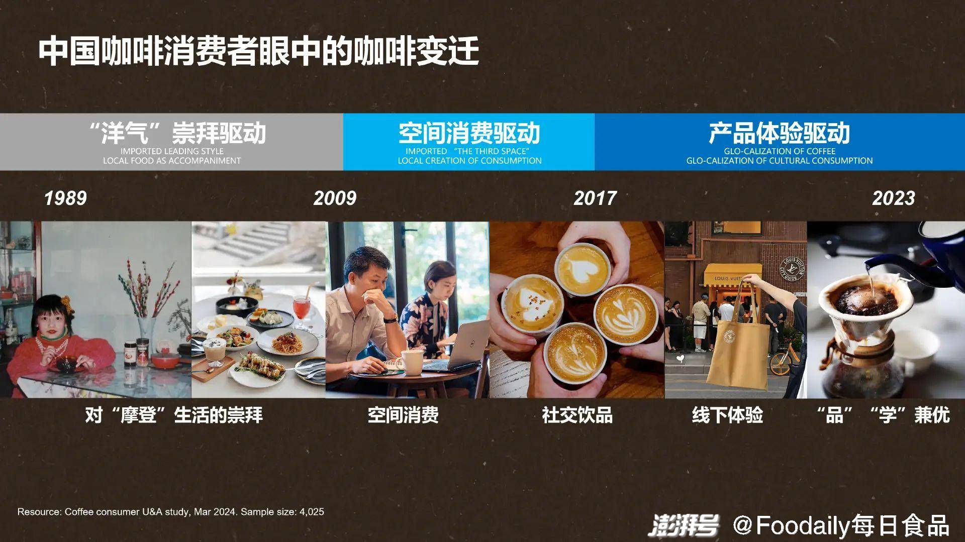 咖啡消费正在中国崛起并快速渗透。目前,中国整体咖啡产业的潜在市场空间已超万亿,包含在速溶、即饮以及现磨咖啡之内的多种细分业态蓬勃发展。 凯度数据显示,从2022年至2025年,中国咖啡市场的复合增长率预计将达到12.5%;其中代表高品质和体验属性的现磨咖啡增长率为21.56%,高于整体市场 一倍多;特别是在上海、北京、成都等一线和新一线城市,咖啡的消费量非常高。并且,中国大陆咖啡消费远低于一些发达国家和地区,增长空间依旧充 足。 01 中国咖啡消费六大趋势洞察 近几年,中国消费者对咖啡的认知在不断变化,消费方式和咖啡诉求也在更新。 从消费者视角来看,咖啡消费在中国的崛起可以分为三个阶段:最开始咖啡是一个特别"洋气"的饮料,喝咖啡代表对摩登生活的崇拜和向往; 后来咖啡馆的出现,为喝咖啡提供了一个"空间",咖啡变成了一种社交饮料; 再到过去五年,消费者对咖啡本身有了更多的关注,喝咖啡的场地也有了更多的可能性,也就是说咖啡与传统的空间逐渐脱钩了,所以我们进入到一个产品 体验驱动咖啡消费的时代。 以产品体验为中心,雀巢大中华区咖啡品牌沟通与创新总监赵雪玫分享了中国咖啡用户消费的六大趋势。 1、第一杯...第N杯的变化 ...