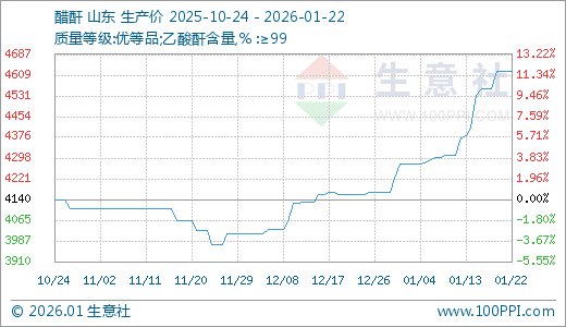 01月22日醋酐4622.50元/吨 10天上涨5.66%