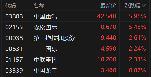 港股异动丨重型机械股继续拉升 中国重汽盘中飙涨14%再创新高