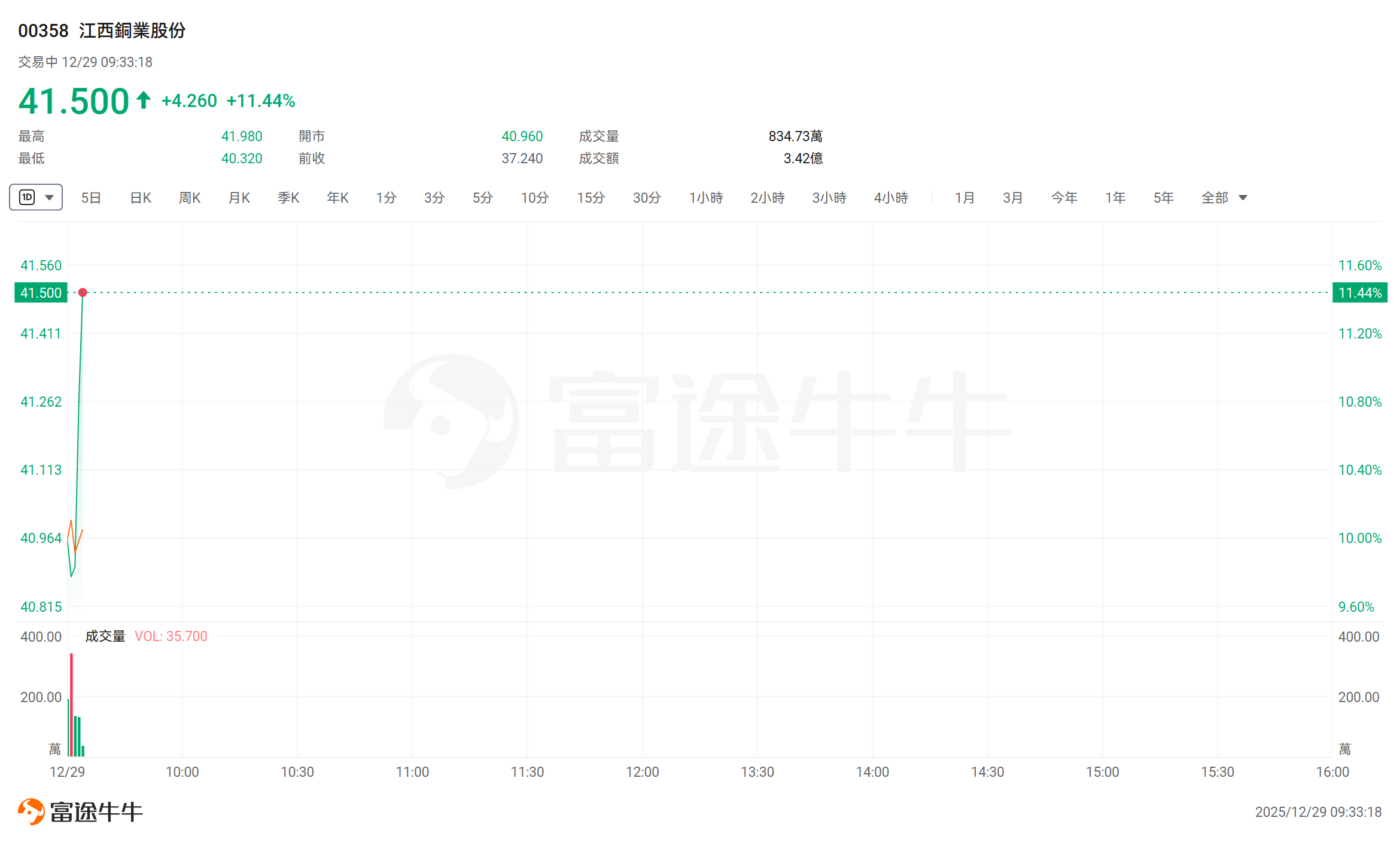 江西铜业股份(00358.HK)盘中涨超11% 拟不超7.64亿英镑收购索尔黄金