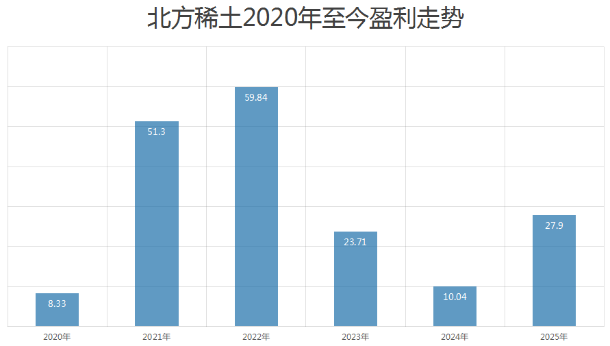 稀土板块近期市场表现 - 10月13日稀土板块涨幅达9.49%,位列所有热门概念板块首位,多只成分股如包钢股份、北方稀土和中国稀土涨停 [1] - 10月9日以来稀土指数上涨约14% [17] - 北方稀土下半年股价涨幅达131.85%,截至10月13日收盘,其年内涨幅超过170% [1][19] 稀土公司估值水平 - 北方稀土当前估值达到75倍,卖方对其全年盈利预期为28亿元 [1] - 中国稀土、广晟有色、盛和资源的年化估值分别约为177倍、83倍和52倍 [22] - 部分稀土股估值超过百倍,显著高于黄金、铜等基础原材料行业约30倍的估值天花板 [1][22] 稀土公司盈利状况 - 北方稀土预计前三季度归母净利润为15.1亿元至15.7亿元,同比增加272.54%到287.34% [5] - 北方稀土前三季度归母净利润呈逐季度放大趋势,分别为4.3亿元、5亿元、5.8亿元至6.4亿元 [6] - 包钢股份上半年归母利润为1.5亿元,同比增长40%,但其稀土产品营收占比小,钢材产品营收占比达77% [3] 稀土价格与供需 - 10月13日多数稀土产品价格下行,仅氧化镝因头部企业采购增多而小幅上调 [2] - 需求端稀土传统旺季渐近,供需格局或持续向好,稀土价格或稳中有进 [1] 政策影响与行业趋势 - 10月9日商务部对含有中国成分的部分境外稀土相关物项实施出口管制,覆盖稀土全产业链并首次涉及半导体及人工智能领域 [16] - 4月已对7类中重稀土相关物项实施出口管制,稀土供给刚性或进一步加强 [15][16] - 国内出口政策变化和稀土战略价值提升是今年左右稀土板块运行的最主要变量 [18] 股价与历史周期对比 - 北方稀土最新股价57.73元,接近2021年历史高点60.58元,今年8月末高点为58.83元 [11][12] - 中国稀土和广晟有色股价在8月末至9月初期间已反超2021年周期高点 [13] - 北方稀土2021年和2022年归母利润均超过50亿元,当前盈利水平未回到周期高点 [10]