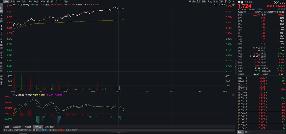 钨矿战略地位提升,矿业ETF(561330)午后大涨超3%,年内涨超有色