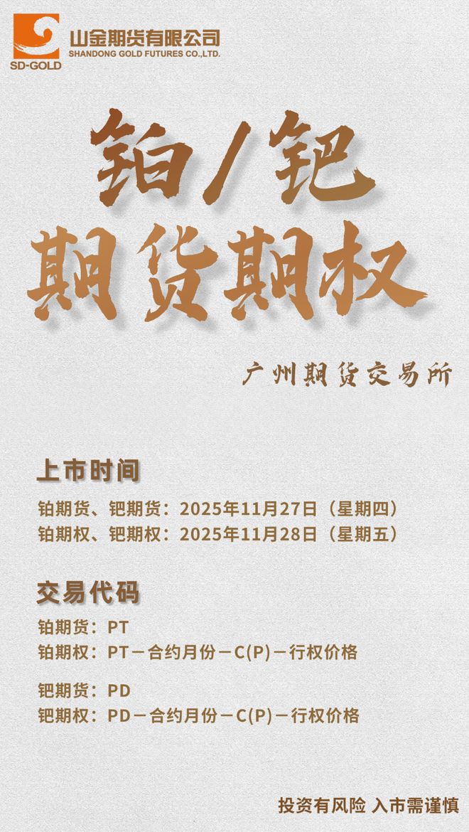 近日,广期所发布了铂、钯期货和期权合约及相关业务细则,以及铂、钯期货指定交割仓库和厂库名 单,明确铂、钯期货合约自2025年11月27日起上市交易,铂、钯期权合约自2025年11月28日起上市交 易。 对此,业内人士表示,铂、钯期货及期权合约规则设计科学合理,包括交割在内的各项制度设计非常贴 近现货实际,能有效降低产业企业的交割成本和风险,为期货市场有效发挥服务实体经济功能提供了重 要的制度保证。 合约设计受市场广泛认可 "铂、钯作为汽车尾气治理和氢能领域关键原料,近5年来的年度价格波动率超20%,产业链风险管理需 求迫切。 广期所铂、钯期货凭借'锭+海绵'双形态交割、动态风险参数调整两大创新举措,相比传统方 式更适配铂、钯上中下游产业需求,有助于企业降低套保交易成本、精准管控价格风险。与此同时,还 能通过人民币定价的方式增强国内企业参与国际竞争的话语权。"格林大华期货副总经理王骏表示, 铂、钯企业可卖出套保锁定售价,冶炼企业以双向套保稳定加工利润,下游制造企业通过买入套保锁定 原料成本,运用期货工具较成熟的企业还可搭配"期货+期权"等创新模式,为我国绿色低碳经济高质量 发展提供有力的金融保障。 深化专业服务 ...