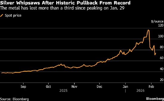 白银市场近期极端波动 - 现货白银价格在周五亚洲交易时段一度上涨6.2%,此前曾跌至每盎司64美元附近[1][6] - 前一交易日白银价格暴跌20%,回吐了上月一轮大涨带来的全部涨幅[1][6] - 自1月29日触及历史高点以来,白银价格已累计下跌逾三分之一[1][6] - 近期白银价格波动幅度和速度为1980年以来最剧烈水平[1][6] 市场流动性状况与机制 - 白银市场规模较小且流动性相对不足,导致其价格波动向来比黄金更为剧烈[1][6] - 波动率上升时,做市商会扩大买卖价差并缩减资产负债表使用规模,导致流动性在最需要时反而疲软[3][8] - 在市场秩序恢复前,波动率恐陷入自我强化循环[3][8] - 投机动能叠加场外交易流动性萎缩进一步放大了波动幅度[1][6] 近期价格驱动因素与市场行为 - 贵金属多年牛市行情上月加速上行,受地缘政治风险升级、市场对美联储独立性的担忧以及中国投机性买盘推动[3][8] - 整个1月,投资者持续增持贵金属大额头寸,大举涌入杠杆交易所交易产品及看涨期权[3][8] - 1月30日白银创史上最大单日跌幅,黄金也录得2013年以来最大单日跌幅[3][8] - 过去一周中国买盘大幅萎缩,国内白银价格相对国际基准由升水转为贴水,市场剧烈波动抑制买需[3][8] - 上海期货交易所白银持仓量跌至四年多来最低水平,反映头寸正被持续平仓[3][8] - 金瑞期货分析师表示多头止损离场,空头获利了结,且临近春节长假投资者倾向于轻仓过节[3][8] 黄金市场表现与机构观点 - 黄金价格在早盘下跌后转而走高,流动性更佳的黄金市场表现好于白银[1][5][6][10] - 本周多家银行及资产管理机构重申黄金长期看涨观点[5][10] - 富达国际一位在暴跌前抛售黄金的基金经理表示已准备再度买入[5][10] - 太平洋投资管理公司大宗商品投资组合管理团队负责人认为黄金上行趋势未受破坏[5][10] - 摩根大通策略师称比特币长期吸引力远胜黄金[5][10] 最新市场价格数据 - 新加坡时间下午2点25分,现货白银上涨4.5%,报每盎司74.09美元[5][10] - 现货黄金上涨1.7%,报每盎司4860.27美元[5][10] - 铂金及钯金价格下跌[5][10] - 彭博美元即期指数小幅下跌0.1%,但本周累计上涨0.4%[5][10]