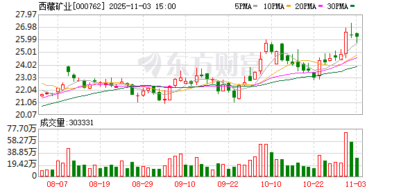西藏矿业股价微跌0.31% 上半年亏损1530.5万元