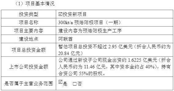 公告称,EGA是全球最大的高纯铝生产企业,也是阿联酋除石油、天然气之外最大的工业企业。目前 EGA的电解铝产能约为270万吨;EGA与公司的业务合作近20年,是公司的优质下游客户和国际合作伙 伴,EGA作为本合资项目的共同投资人和客户,将与公司共同拓展海外市场,提高公司应对复杂环境 风险的能力。 索通发展(603612)(603612.SH)发布公告,为落实既定发展战略,布局海外产能、进一步开拓全球市 场,公司与EGA签署了《合资协议》,共同出资在阿联酋设立合资公司,在阿联酋建设300kt/a预焙阳 极项目(一期),暂估项目总投资不超过2.95亿美元(折合人民币约为20.84亿元),具体以实际投资情况为 准。 ...