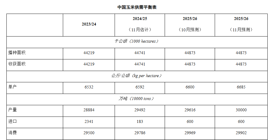 农业农村部发布11月农产品供需分析 小幅上调2025/26年度玉米、棉花产量预估