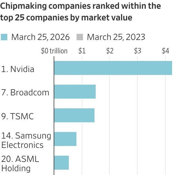 行业格局变迁 - 人工智能蓬勃发展极大地推动了半导体行业的发展 三年前全球市值最高的25家公司中只有三家半导体企业 如今有七家半导体公司跻身前25强[1][3][4] - 芯片公司的崛起是近年来最有价值公司榜单上最大的变化之一 此前榜单由苹果 微软 亚马逊 谷歌和脸书的母公司等科技巨头主导[4] 公司市值与排名变化 - 英伟达以近4.3万亿美元的市值位居榜首 三年前其排名第六 市值为6610亿美元[3] - SK海力士目前市值约为4700亿美元 位列榜单第21位 自2025年初以来股价已上涨近五倍 三年前其排名为第322位 市值为490亿美元[7] - 除英伟达外 高估值芯片公司名单中还包括台积电和三星电子 它们如今分别排名第9和第14位 三年前已位列前25强[7] - 新晋前25强企业包括排名第七的美国网络芯片制造商博通公司 排名第二十二的美光科技公司以及排名第二十的荷兰光刻机巨头ASML公司[7] 市场与财务数据 - 据Gartner预测 今年全球芯片收入预计将增长33% 突破1万亿美元大关 此前预测人士认为这一里程碑要到2030年才能实现[3] - SK海力士计划于2025年下半年在美国上市 已向美国证券交易委员会提交ADR申请 业内分析师估计此次上市有望筹集约100亿美元资金[3] 技术与产品驱动 - SK海力士是高带宽内存领域的早期领导者 这项技术使英伟达等公司生产的处理器芯片能够执行更快的AI计算[7] - 美光科技作为大型存储器厂商 受益于全球存储器短缺引发的空前价格上涨[7] - ASML公司生产用于制造业内最尖端芯片的光刻机[7]