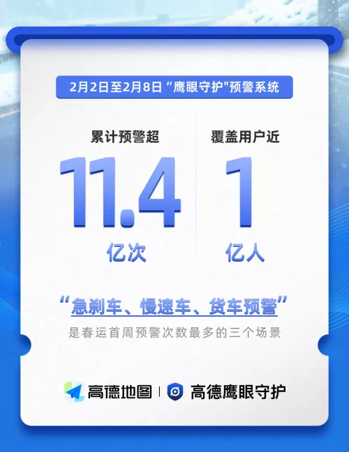 高德:春运首周“鹰眼守护”预警超11.4亿次,用户导航总里程超340亿公里