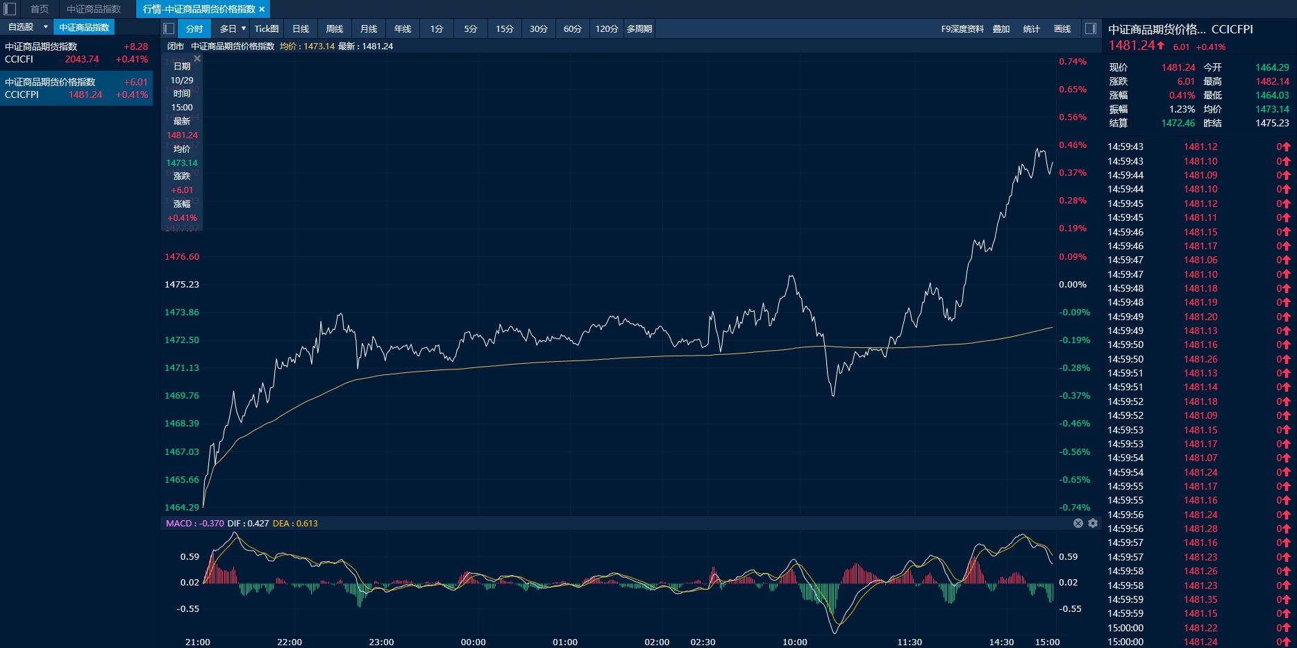 新华财经北京10月29日电(吴郑思、左元)10月29日,焦煤涨超3%,鸡蛋涨超2%,白银、焦炭、玻璃 、工业硅、天胶、氧化铝、热卷、液化石油气、20号 胶、沪铜、纯碱、PVC、锰硅、螺纹钢涨超1%;菜油跌超2%,棕榈油、高硫燃料油跌超1%。 三大油脂跌幅居前,菜油跌超2%,棕榈油下跌近2%,豆油下跌近1%。正在马来西亚进行访问的加拿大总理卡尼27日对媒体表示,他没有排除放宽前任特鲁 多政府对中资投资限制的可能性,称两国正处于"重新设定对未来关系走向预期"的阶段。他同时未否认未来与中国达成自由贸易协定,或取消加拿大自2024 年起与美国同步对华征收的电动汽车关税的可能。该消息对于菜籽油形成利空,加拿大一直是我国最大的油菜籽进口国。此外,AmInvestment Bank在一份 报告中指出,需求疲软正在拖累棕榈油价格,随着冬季临近,印度等主要买家的需求预计将放缓,届时棕榈油消费通常下降,买家会转向豆油等替代品。同 时,令吉走强也被认为抑制了棕榈油采购。 其他品种方面,高硫燃料油跌超也超过1%。 中证商品期货价格指数日内走势图(来源:新华财经专业终端) (文章来源:新华财经) 截至29日下午收盘,中证商品期货价格指 ...