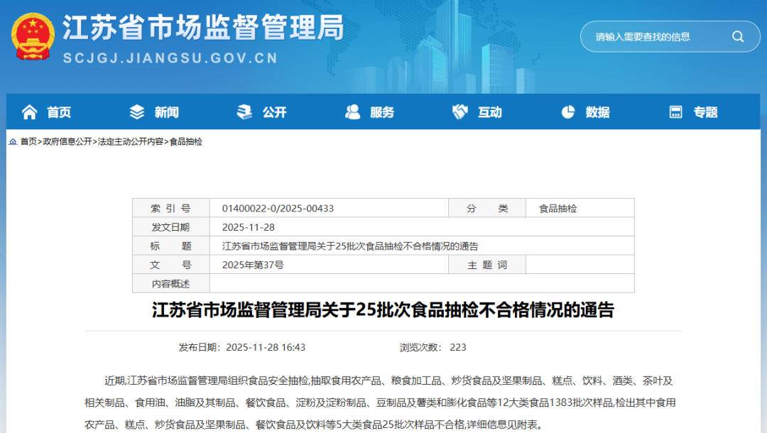 近期,江苏省市场监督管理局组织食品安全抽检,抽取食用农产品、粮食加工品、炒货食品及坚果制品、糕点、饮料、酒类、茶叶及相关制品、食用油、 油脂及其制品、餐饮食品、淀粉及淀粉制品、豆制品及薯类和膨化食品等12大类食品1383批次样品,检出其中食用农产品、糕点、炒货食品及坚果制品、 餐饮食品及饮料等5大类食品25批次样品不合格。 江苏省市场监督管理局还同时公布了不合格项目的相关知识 恩诺沙星 恩诺沙星属第三代喹诺酮类药物,是一类人工合成的广谱抗菌药,用于治疗动物的皮肤感染、呼吸道感染等,是动物专属用药。恩诺沙星超标的原因,可 能是在动物养殖过程中为快速控制疫病,违规加大用药量或不遵守休药期规定,致使产品上市销售时的药物残留量超标。 阴离子合成洗涤剂(以十二烷基苯磺酸钠计) 阴离子合成洗涤剂,即我们日常生活中经常用到的洗衣粉、洗洁精、洗衣液、肥皂等洗涤剂的主要成分,其主要成分十二烷基磺酸钠,是一种低毒物质, 在消毒企业中广泛使用。餐(饮)具中检出阴离子合成洗涤剂,可能是部分单位使用的洗涤剂不合格或使用量过大,未经足够量清水冲洗或餐具漂洗池内清 洗用水重复使用或餐具数量多,造成交叉污染,进而残存在餐(饮)具中。 扬子晚 ...