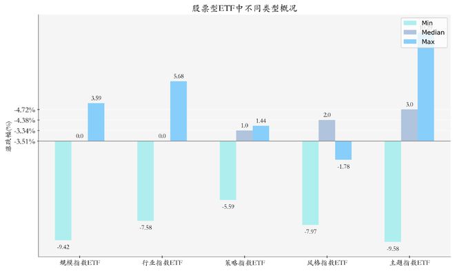 全球及A股主要指数表现 - 上周A股主要指数普遍下跌,上证综指下跌3.11%收于3238.23点,深证成指下跌5.13%收于9834.44点,创业板指下跌6.73%收于1926.37点 [1] - 美股主要指数大幅上涨,纳斯达克综指上涨7.29%,道琼斯工业指数上涨4.95%,标普500上涨5.7% [1] - 亚太市场表现分化,恒生指数下跌8.47%,日经225指数下跌0.58% [1] 股票型ETF市场整体表现 - 上周股票型ETF周度收益率中位数为-4.04% [1] - 按分类看,主题指数ETF中华夏上证科创板半导体材料设备主题ETF收益率最高,达10.29%;行业指数ETF中鹏华国证粮食产业ETF收益率最高,为5.68%;规模指数ETF中南方深证100ETF收益率最高,为3.59%;策略指数ETF中广发中证智选高股息策略ETF收益率最高,为1.44%;风格指数ETF中广发上证科创板成长ETF收益率最高,为-1.78% [1] 股票型ETF涨跌幅排行 - 涨幅前五的ETF集中于半导体、人工智能、粮食及黄金产业,华夏上证科创板半导体材料设备主题ETF以10.29%涨幅居首,华夏上证科创板人工智能ETF以10.03%涨幅次之 [3][4] - 跌幅前五的ETF集中于创新药、中小盘及新能源板块,富国中证沪港深创新药产业ETF以-9.58%跌幅居首,招商中证2000增强策略ETF以-9.42%跌幅次之 [4] 股票型ETF流动性 - 上周股票型ETF市场流动性显著提升,日均成交额增加84.7%,日均成交量增加96.4%,换手率增加0.24% [4] 股票型ETF资金流向 - 资金流入最多的ETF为华夏上证50ETF,流入12.18亿元,其次为国泰中证军工ETF流入4.24亿元 [7] - 资金流出最多的ETF为华夏上证科创板50成份ETF,流出11.79亿元,其次为易方达沪深300ETF发起式流出5.99亿元 [7][8] ETF融资融券情况 - 上周股票型ETF融资余额由455.487亿元下降至447.65亿元,融券余量由21.836亿份提升至22.215亿份 [9] - 周内融资买入额最高的ETF为华夏上证科创板50成份ETF,买入总额6.99亿元;融券卖出量最高的ETF为华泰柏瑞沪深300ETF,卖出总量0.09亿份 [9] ETF存量市场情况 - 上周市场上存量ETF共计1121只,其中股票型ETF905只,占比80.7% [11] - ETF市场总规模达到39192.23亿元,较前一周增加1051.18亿元,其中股票型ETF规模为29065.73亿元,占比74.2% [13] - 股票型ETF总规模较前一周增加818.76亿元,其中华泰柏瑞沪深300ETF规模增幅最高,为254.75亿元,国泰中证军工ETF在主题指数中规模增幅最高,为14.55亿元 [13] ETF发行与成立 - 上周无新ETF发行,但有4只新ETF成立,涉及自由现金流、科创板综合及沪深300等主题 [15] 机构观点:半导体行业 - 中信证券指出,美国关税政策以晶圆流片工厂所在地认定原产地,国内模拟芯片企业直接受益,建议关注低国产化率环节以及本土晶圆制造环节 [15] - 银河证券认为,关税政策长期可能推迟下游需求复苏,但将倒逼国内半导体自主可控,看好国产创新良机,建议关注国内半导体自主可控方向、射频和模拟IC以及半导体制造龙头公司 [16]