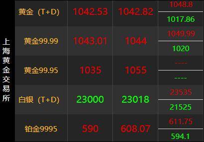 今日,国际黄金和白银价格均创历史新高。伦敦现货黄金价格一度涨破每盎司4690美元,现货白银价格 一度突破每盎司94美元。 黄金和金价迅速冲上热搜。 截至今日9:57,上海黄金交易所金价如下: | | 黄金(T+D) | 1042.53 | 1042.82 | 107 8 8 | | --- | --- | --- | --- | --- | | | | | | 1017.86 | | | 黄全99.99 | 1023 00 | 1044 | 1049199 | | | | | | 1020 | | | 黄金99.95 白银 (T+D) | 1085 23000 | -10-55 23018 | 23535 | | 上海黄金交易 | | | | Carrent State | | 所 | | | | | | | | | | 21525 | | | 铂全9995 | 590 | 608.07 | 611.75 | | | | | | 594.1 | 潮宏基吊坠一夜涨了1.9万 一口价黄金涨得比金价还猛 今日各大黄金品牌价格,周生生每克1451元,周大福每克1455元,老凤祥报价每克1456元,老庙黄金每 克145 ...