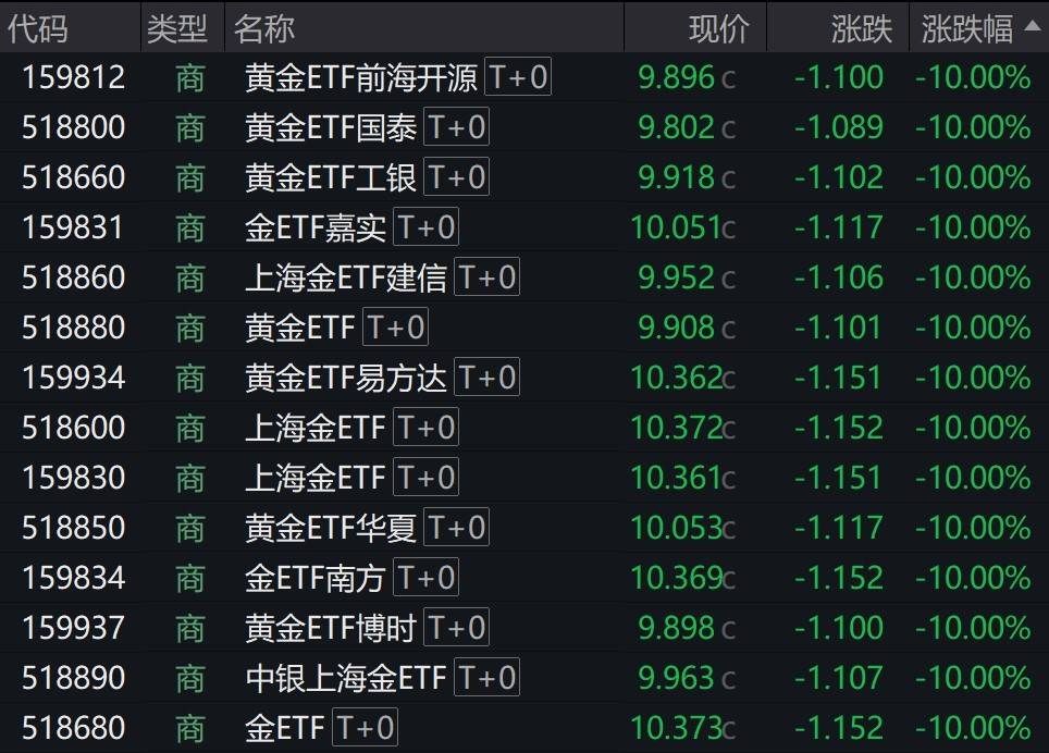 金银价继续大跌,商品黄金相关ETF早盘跌停开盘