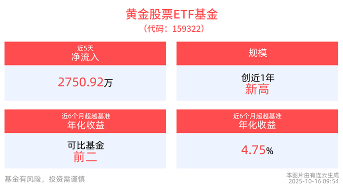 黄金股票ETF基金(159322)规模新高,资金持续看好黄金行情!
