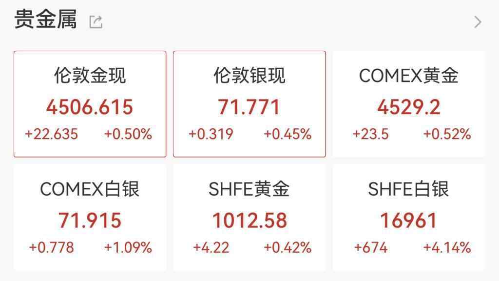 黄金站上4400美元/盎司 贵金属上演集体狂欢