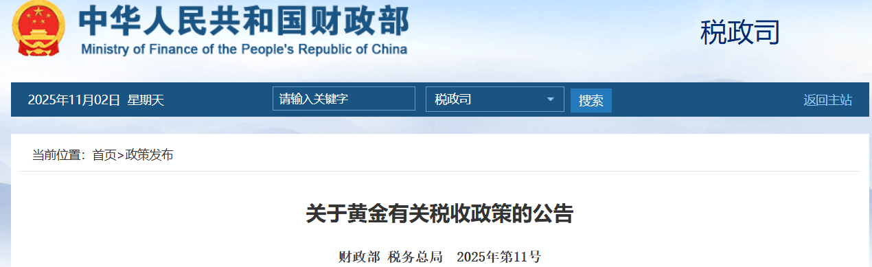 11月1日,财政部、国家税务总局发布《关于黄金有关税收政策的公告》,明确了2025年11月1日至2027年12月31日期间黄金交易的税收规则。此次新政聚焦 交易所场内交易增值税优惠与实物交割环节管理,引发市场广泛关注。 分析人士称,此次新政将进一步强化场内交易的吸引力,推动黄金交易向规范化、集中化方向发展;通过税收杠杆引导黄金资源在投资与消费领域的合理配 置;最后,可能促使部分场外交易转入场内,提升市场透明度和监管效能,长期有利于黄金市场的健康发展。 新政有哪些核心调整 11月1日,财政部、国家税务总局发布《关于黄金有关税收政策的公告》。据公告内容,会员单位或客户通过上海黄金交易所、上海期货交易所交易标准黄 金时,卖出方销售标准黄金可享受免征增值税优惠。在实物交割环节,按"未发生实物交割出库"和"发生实物交割出库"进行区分:未发生实物交割出库的, 交易所免征增值税;发生实物交割出库的,会员单位按购入标准黄金的用途适用不同税收政策。 客户购入标准黄金,交易所免征增值税,并按照实际成交价格向买入方客户开具普通发票。客户为增值税一般纳税人的,以普通发票上注明的金额和6%的 扣除率计算进项税额。买入方客户将标准黄金直 ...