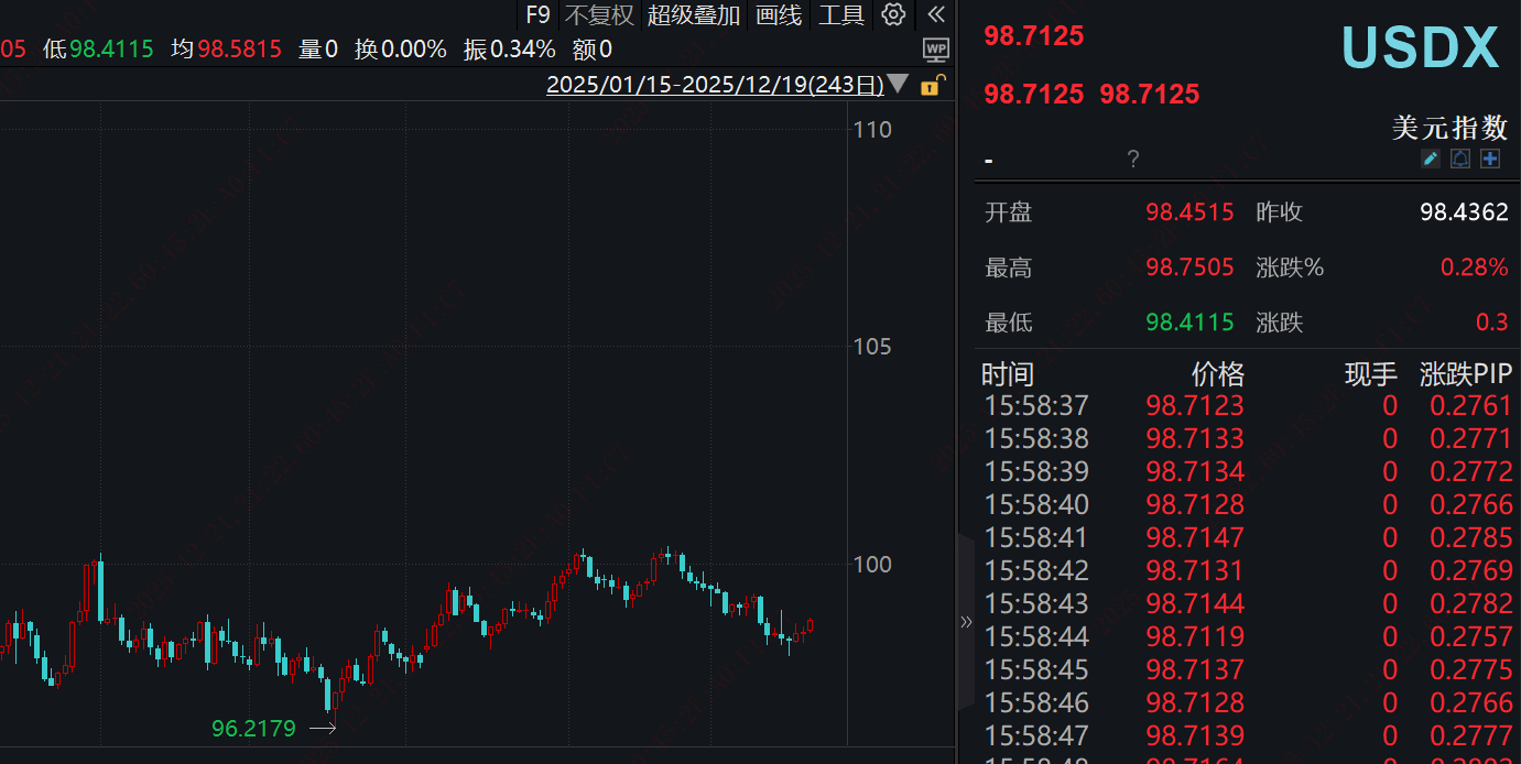 美元指数走势分析 - 美元指数近期呈现明确且力度显著的走弱趋势 自11月下旬以来开启震荡下行模式 连续跌破100和99两大整数关口 截至12月17日收盘 期间累计下行幅度达到1.72% 最新收盘报98.71 再次逼近98整数关口 [1] - 从年内更长周期观察 美元指数整体下行态势清晰 年内下行幅度已达到9.30% 其中上半年跌幅更是达到10.8% 尽管年中出现阶段性反弹 但未能扭转整体弱势格局 [1] 美元走弱对黄金的核心驱动逻辑 - 黄金与美元之间存在长期验证的“跷跷板效应” 其核心源于黄金以美元为主要计价货币的国际计价体系 当美元指数走弱时 非美元货币持有者购买黄金的成本降低 从而提振全球市场需求并推动金价上行 [3] - 美元走弱往往伴随美元资产吸引力下降 促使投资者调整资产组合 将资金转向具备内在价值的黄金资产 形成资金的替代流入 [3] - 在美元走弱的宏观环境中 全球经济不确定性和通胀预期容易升温 黄金作为天然的抗通胀工具和避险资产 其保值增值属性会得到强化 成为资金规避市场波动的“安全港湾” 多重因素叠加使得美元弱周期成为黄金价格上涨的重要窗口期 [3] 黄金ETF作为配置工具的优势 - 黄金ETF以实物黄金为底层资产 其净值走势与黄金价格高度同步 而黄金价格与美元指数呈显著反向联动 在美元持续走弱推动金价上行的过程中 黄金ETF能直接承接金价上涨带来的收益 成为投资者锚定美元弱周期、分享黄金增值红利的“桥梁” [4] - 相较于传统黄金投资方式 黄金ETF在交易便捷性上具有优势 可通过普通证券账户直接交易 流程与买卖股票一致 交易时间与A股同步 能让投资者根据美元指数的实时波动灵活调整仓位 精准捕捉阶段性机遇 [4] - 黄金ETF具有低门槛与低成本特性 投资者无需承担实物黄金的存储和鉴定成本 仅需小额资金即可买入 适合批量布局以分享美元弱周期下的长期收益 [4] - 黄金ETF流动性充足 在美元走势出现短期波动时 投资者能快速调整持仓以规避风险 兼顾收益与安全性 [4] 当前市场观点与配置建议 - 当前美元走弱的趋势已明确确立 年内累计近10%的跌幅已为黄金市场奠定了上行基础 后续黄金上涨空间仍在持续打开 [5] - 对于追求稳健配置的投资者而言 主动通过黄金ETF布局是明智选择 既能精准衔接美元弱周期与黄金上涨的核心逻辑 又能以便捷、低成本的方式把握机遇 [5] - 黄金凭借抗通胀、对冲地缘风险的核心属性 叠加全球宽松货币政策与央行购金的长期支撑 成为资产配置的“压舱石” [5]