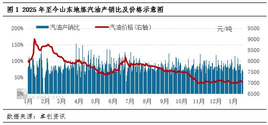 行情回顾:上周市场表现 - 原油价格先涨后跌,对成品油市场支撑有限 [1] - 受降雪天气影响,汽柴油终端需求一般,以消化库存为主,汽柴油产销比均未达平衡线 [1] - 山东地炼汽油周度产量为51.17万吨,环比上涨1.15%,同比上涨8.62%,供应小幅增长利空市场 [1] - 山东地炼汽油车单产销比均值为78%,较前一周下跌4个百分点 [1] - 截至1月18日,山东地炼92汽油均价为7039元/吨,较前一周同期下跌20元/吨 [1] - 山东地炼柴油周度产量为101.36万吨,环比上涨2.39%,同比上涨15.47%,供应小幅增加利空市场 [3] - 受低温降雪影响,北方户外施工活跃度受限,柴油需求一般,但前期因地缘局势引发“买涨”情绪,成交曾短时好转 [3] - 山东地炼柴油车单产销比均值为84%,较前一周上涨2个百分点 [3] - 截至1月18日,山东地炼0柴油均价为5750元/吨,较前一周同期下跌18元/吨 [3] 后市预测:未来一周展望 - 预计国际原油因地缘问题和宏观关税等多发因素将宽幅波动,波动性放大 [5] - 原油市场基本面偏弱形成拖累,整体上涨后面对阻力,趋势性上涨难度较大,更多体现为脉冲式上涨后缓慢下跌的节奏 [5] - 供应方面,未来一周暂无新炼厂计划检修或开工,多数炼厂保持平稳运行,无棣鑫岳计划1月底开工 [6] - 预计山东地炼一次开工负荷保持稳定,汽柴油等产品供应保持充足 [6] - 需求方面,降雪天气过后道路恢复通畅,居民出行和物流运输活跃度恢复,汽柴油需求或有小幅好转 [6] - 终端阶段性补库或有增多,市场成交或有短时好转,但贸易投机需求或仍较低迷 [6] - 综合来看,预计本周山东汽油、柴油市场价格或呈先跌后涨走势,但均值水平或仍小幅下滑 [7]