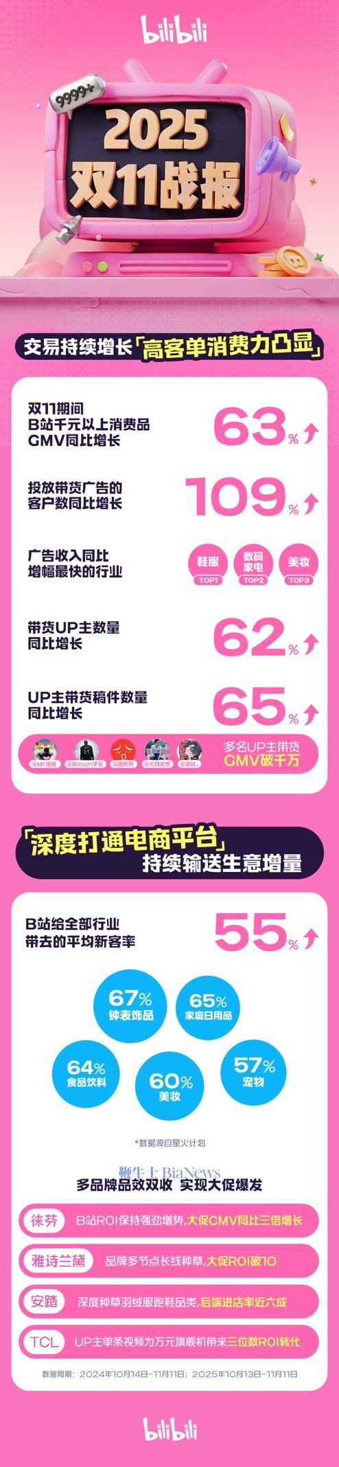 最大电商新客来源之一,B站「双11」为全行业带来平均新客率达55%