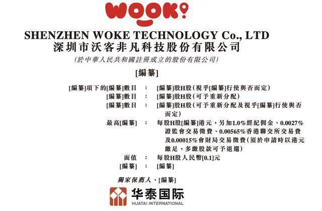 | 景用下的需要敷目 | [编纂]股H股(税手[编纂]行使與否而定) | | --- | --- | | [编纂]數目 | [编纂]股H股(可于重新分配) | | [编纂]數目 | [编纂]股H股(可予重新分配及視乎[编纂]行使與否 而定) | | 最高[编纂] : | 每股H股[编纂]港元,另加1.0%經纪佣金、0.0027% | | | 證監會交易微費、0.00565%香港聯交所交易費 | | | 及0.00015%會財局交易微費(須於申請時以港元 | | | 繳足,多繳股款可予退還) | | 面值 | 每股H股人民幣[0.1]元 | | 图像 | 【端景】 | | 獨家保薦人,[編纂] | | 瑞财经 吴文婷1月20日,深圳市沃客非凡科技股份有限公司(以下简称"沃客非凡")在港交所递交招股 书,华泰国际为其独家保荐人。 沃客非凡是一家以全链路数字化能力为核心并专注于东南亚的跨境新零售企业。 在全球扩张的明确战略任务推动下,公司已经成为以中国为基地的出境领先3C配件及小家电品牌拥有 人。印度尼西亚仍是其核心市场,公司也策略性地扩展市场至越南、泰国和菲律宾,专注于3C配件、 小家电和家装建材等产品类别的销售 ...