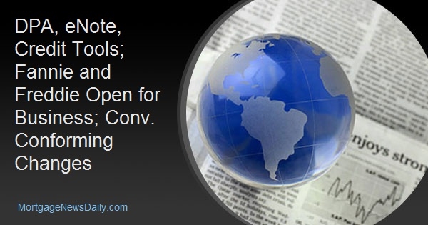 DPA, eNote, Credit Tools; Fannie and Freddie Open for Business; Conv. Conforming Changes