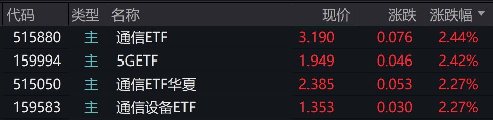 通信概念股走强,5G、通信相关ETF涨超2%