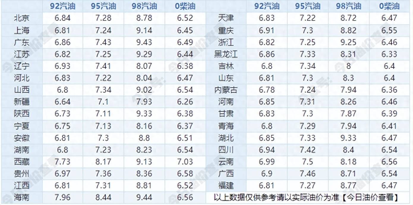 今日是新一轮油价调整周期的第5个工作日,当前预计油价下调95元/吨,折合每升油价下调0.07-0.09 元,相比上周五的油价预计跌幅增加15元/吨,超下调红线,油价有下跌可能。 注意,油价下跌中 注意,受上周国际能源署报告影响,市场对原油供应过剩预期继续强化,而俄乌和谈预期也在不断升 温,进一步压制国际油价。国内油价跌幅稳定增加中,本轮调整有望大跌吗? 这边说下上周五原油市场的表现,美原油:下跌0.69%,收于57.34美元/桶。布伦特原油下跌0.62%,收 于61.17美元/桶。今日国际油价继续震荡,截至发稿,美原油暂报57.67美元/桶,涨幅0.24%。 目前在俄乌局势上,乌克兰总统泽连斯基在昨日称,乌克兰放弃加入北约,但美欧需提供安全保障。今 日美乌还将继续进行和平谈判。市场对俄乌和谈预期直线升温,正等待今日的会谈结果。 | 地区 | 92号汽油 | 95号汽油 | 98号汽油 | 0号柴油 | | --- | --- | --- | --- | --- | | 北京 | 6.84 | 7.28 | 8.78 | 6.52 | | 上海 | 6.81 | 7.24 | 9.14 | 6.45 | | 江 ...