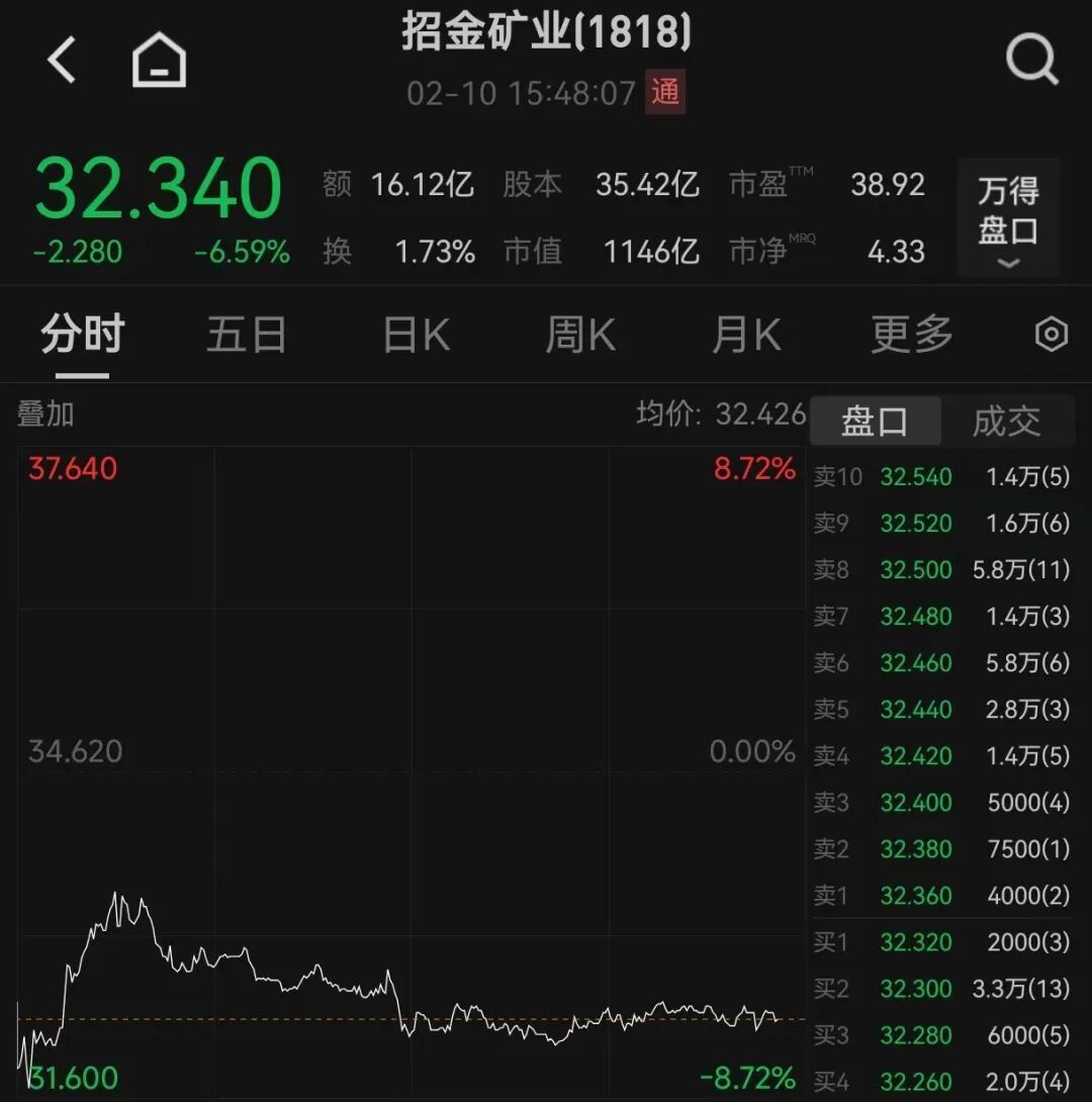 公司股价与市场反应 - 2026年2月10日,招金矿业(1818.HK)开盘大幅下挫,盘中跌幅超过8% [1] - 截至发稿时,公司股价报32.34港元/股,跌幅达6.59%,总市值为1148亿元 [1][12] 安全事故详情 - 2026年2月7日8时50分许,招金矿业旗下蚕庄金矿上庄矿段一盲竖井发生坠罐事故,造成7人死亡 [2][14] - 事故直接原因是双重保险的钢绳同时发生断裂,工人坠入240米深的井底,这种情况非常少见 [8][20] - 事故发生后,企业并未及时上报,招远市应急管理局在2月9日接到举报后才现场核实确认事故 [4][16] - 目前,包括蚕庄金矿矿长、总工程师、安全副矿长等在内的11名相关人员已被控制 [6][18] 涉事资产背景 - 蚕庄金矿为招金矿业全资拥有,公司于2009年12月以4.26亿元的价格获得其100%国有产权 [8][20] - 该矿始建于1970年10月,是中国100家最大有色金属矿采选企业之一,拥有4个采矿权和12个探矿权 [8][20] - 截至评估基准日,蚕庄金矿的金金属含量为16.115吨,矿石储量为338.6287万吨,平均品位为4.8克/吨,后续新增探明储量约4吨,使总储量达到20吨以上 [8][20] 公司回应与沟通情况 - 2026年2月10日,公司接线工作人员对投资者表示,事故对营收暂不会造成影响 [10][22] - 对于涉事金矿是否已停业、涉嫌瞒报等关键问题,工作人员称需咨询相关职能部门,但记者多次致电提供的联系电话均无人接听 [10][22] 历史安全处罚记录 - 2025年12月2日,蚕庄金矿因安全设备安装不符合国家标准,被招远市应急管理局处以3万元罚款 [10][22] - 具体问题包括:独头倒车巷未安装局部通风机;中央水泵房配电所两台630KVA变压器不能互为备用 [10][22] - 2025年7月,该矿因应急救援库内止血带、三角巾、挎包数量少于应急预案规定,违反《生产安全事故应急预案管理办法》,被处以2.5万元罚款 [11][23][24]