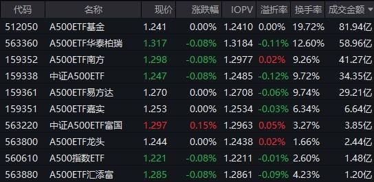 市场早盘震荡调整,中证A500指数下跌1.41%,2只中证A500相关ETF成交额超89亿元