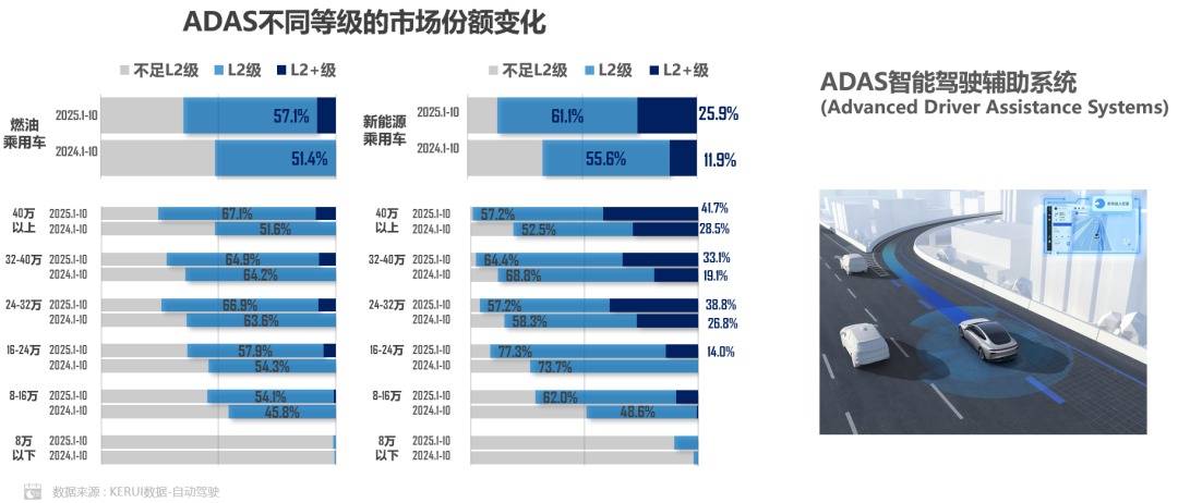 报告:2025年1-10月中国新能源乘用车L2级及以上辅助驾驶功能装车率达87%
