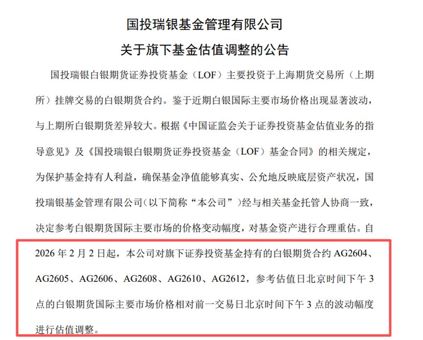 国投瑞银回应白银LOF估值调整:未提前公告,意在避免恐慌与挤兑