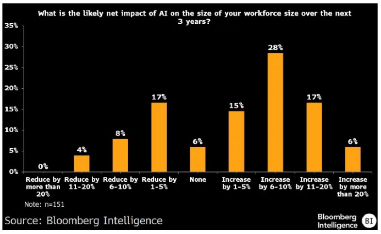 根据一项至关重要的市场调研数据,约三分之二的华尔街金融服务公司在全公司范围采用人工智能应用之后, 最初可能将在实际经营模式中看到员工人数显著增加,这也让投资者们对于这一新技术是否会迅速带来大规模 成本节省产生了疑问。这项最新调查凸显出,人工智能或者机器人还不会大规模抢占工作岗位,至少现在不 会。 根据Bloomberg Intelligence面向华尔街各大机构的一项调查,超过70%的华尔街受访者表示,他们预计人工智能 驱动的应用软件将在未来三年内导致更高的经营成本。然而,大多数受访者仍然预计企业生产力将更快地提 高。该项针对美国高端金融服务行业151名高级员工的调查报告于周三正式发布。 "调查结果强化了一个观点,即人工智能在金融服务领域的最早期阶段,可能更多是关于能力普及与建设,而非 成本大幅削减。"Bloomberg Intelligence的资深分析师迪克莎.格拉(Diksha Gera)和托马斯.诺茨尔(Tomasz Noetzel) 在周三发布的报告中写道。"随着AI驱动自动化技术的规模化,我们认为成本比率在2027至2028年后可能会趋于 正常化,从而将大幅推动经营效率驱动的利润扩张。" 华尔街金 ...