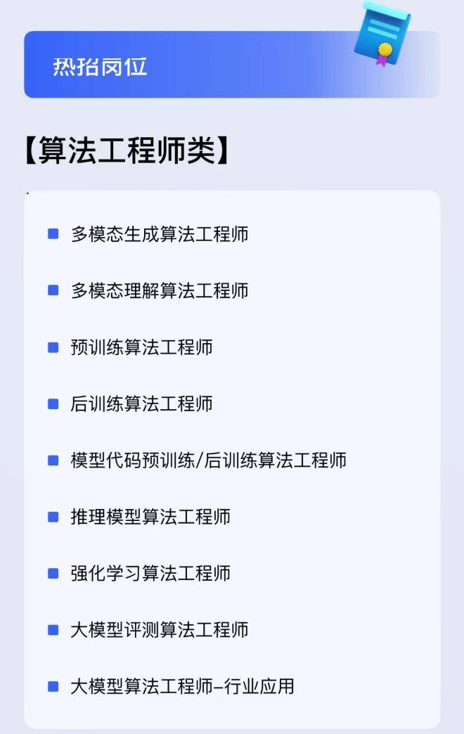 【算法工程师类】 ■ 多模态生成算法工程师 ■ 多模态理解算法工程师 ■ 预训练算法工程师 ■ 后训练算法工程师 ■ 模型代码预训练/后训练算法工程师 ■ 推理模型算法工程师 ■ 强化学习算法工程师 ■ 大模型评测算法工程师 ■ 大模型算法工程师-行业应用 今年 4 月 14 日,中国证券监督管理委员会官网显示,"大模型六小龙"之一的北京智谱华章科技股份有 限公司在北京证监局办理辅导备案,由中国国际金融股份有限公司担任辅导机构,计划于 2025 年 10 月 完成辅导计划,进行考核评估,做好首次公开发行股票并上市申请文件的准备工作。 IT之家 10 月 17 日消息,今日,针对公司组织调整与部门解散消息,智谱 AI 向第一财经回应称:目前 公司涉及产品和研发相关部门运转正常,组织调整涉及人员十余人。一位接近智谱 AI 方面人士对记者 表示,此次调整主要围绕 MaaS 战略转型展开。 IT之家注意到,今日早些时候报道称,正在冲击 IPO 的 AI 大模型独角兽智谱陷入裁员争议。内部人士 确认有调整但不多,离职员工称涉近百人,有人当天签字走人。 这并不是智谱 AI 第一次传出裁员传闻,智谱方面 10 月 10 日 ...